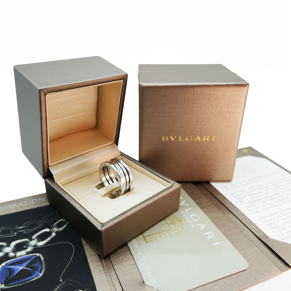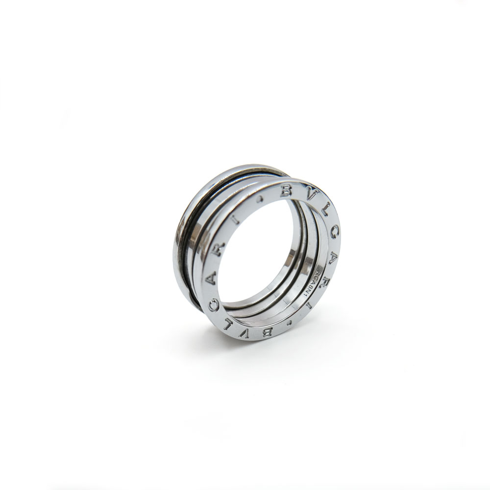 Anello Bulgari BZero1 a tre fasce in oro bianco . Corredato di scatola e garanzia