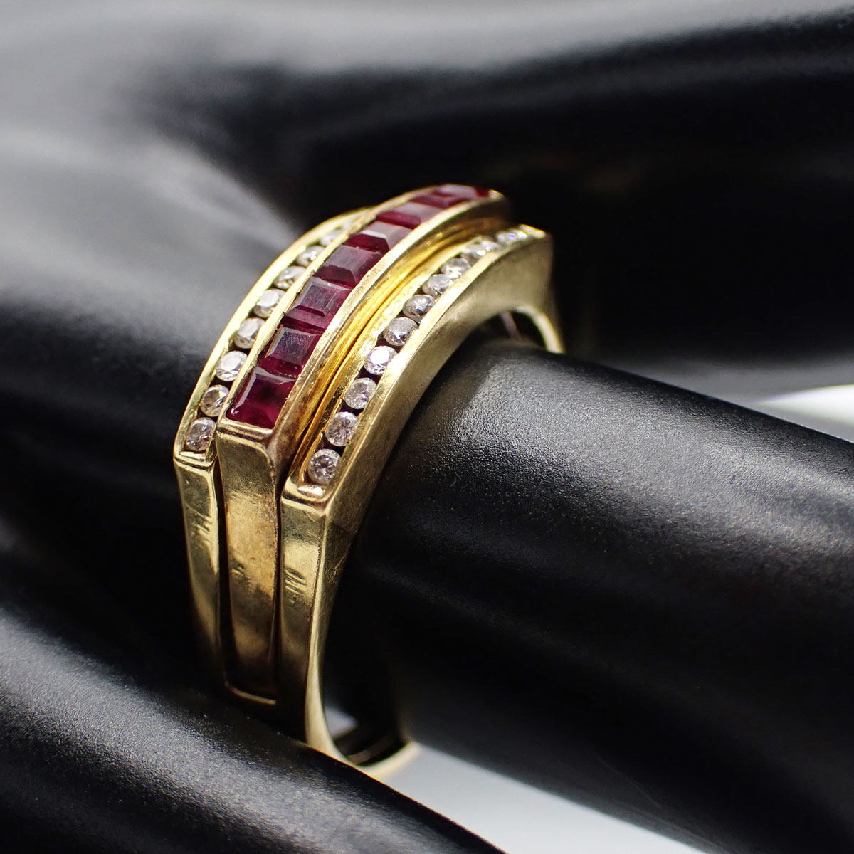 Anello intercambiabile in oro giallo 750 con zaffiri, rubini e diamanti