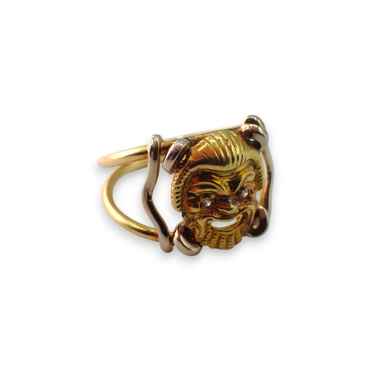 Anello mascherone in oro giallo e bianco 750 con diamanti taglio huit-huit