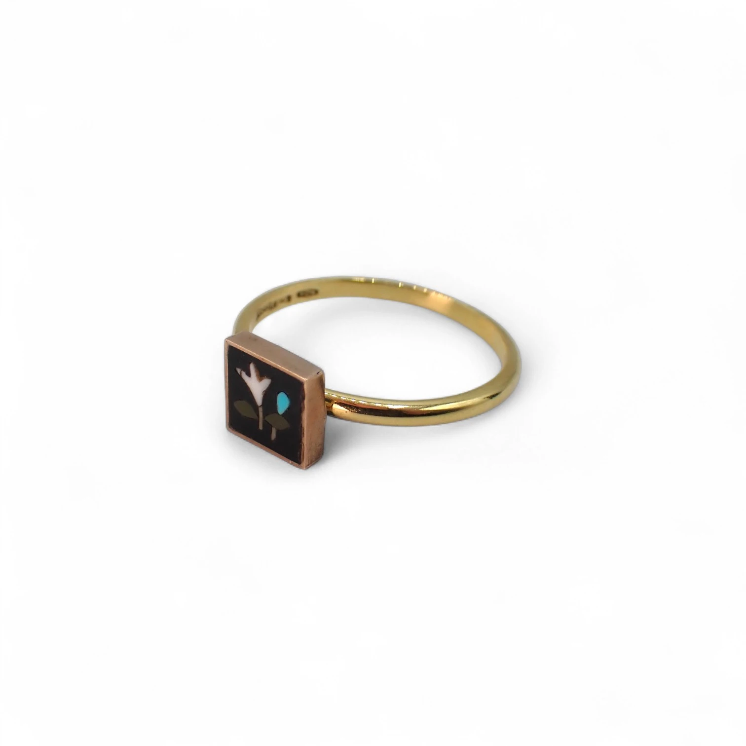 Anello in oro giallo con commesso fiorentino