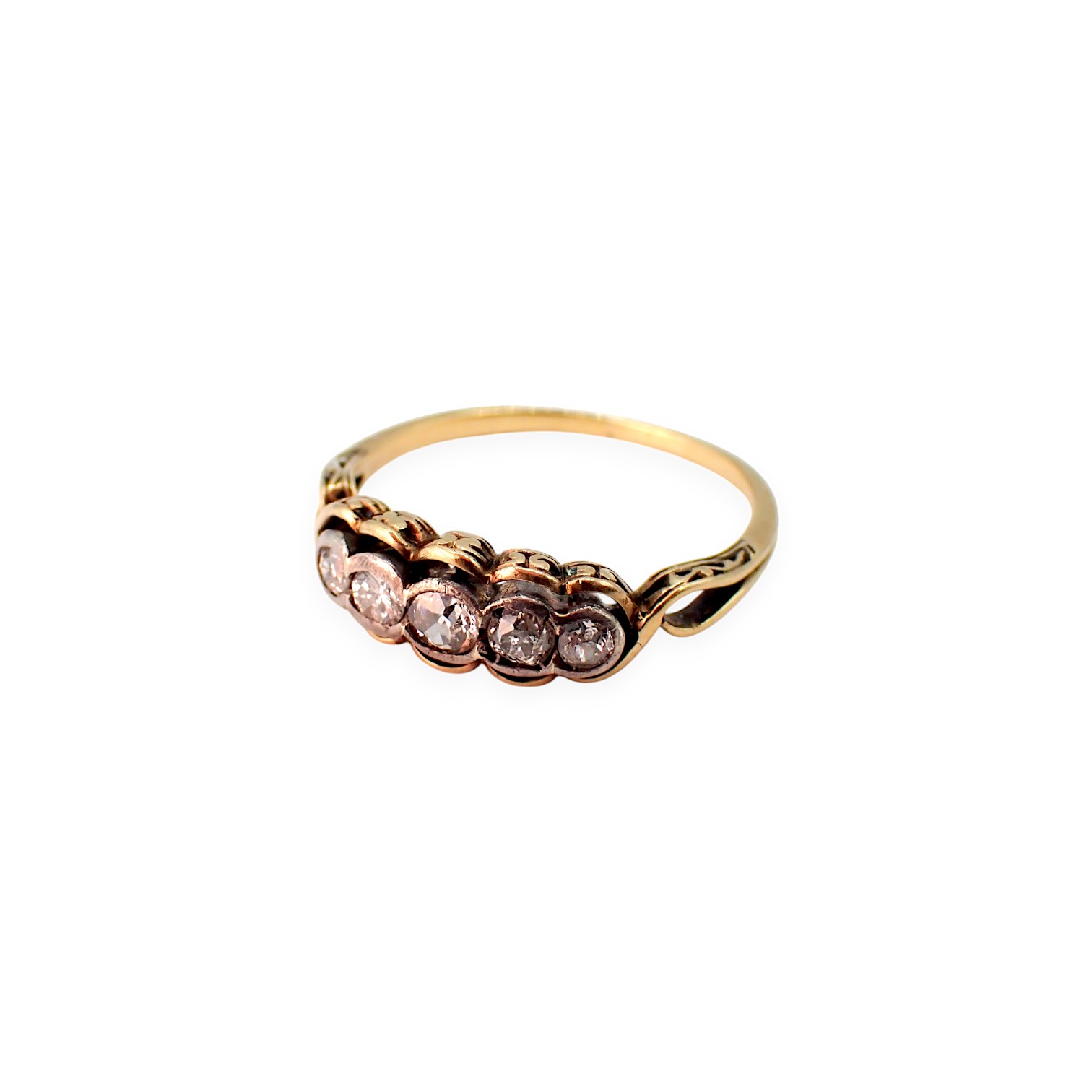 Anello i oro giallo e platino con diamanti taglio antico per circa totali 0,40 ct