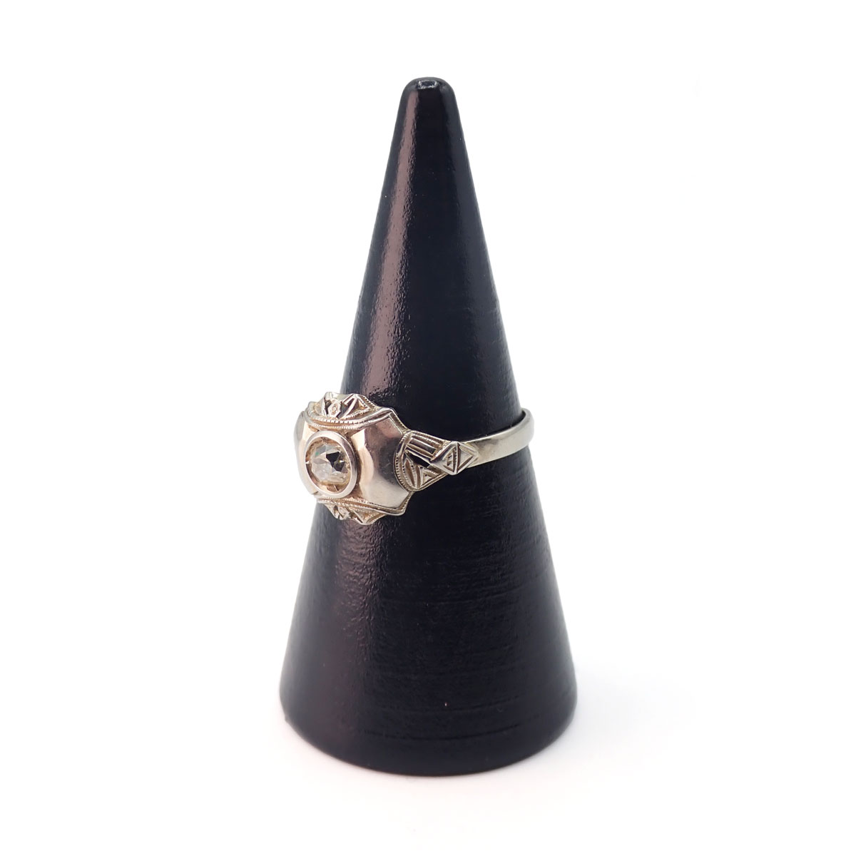 Anello solitario in oro bianco con diamante taglio antico di circa 0,20 ct
