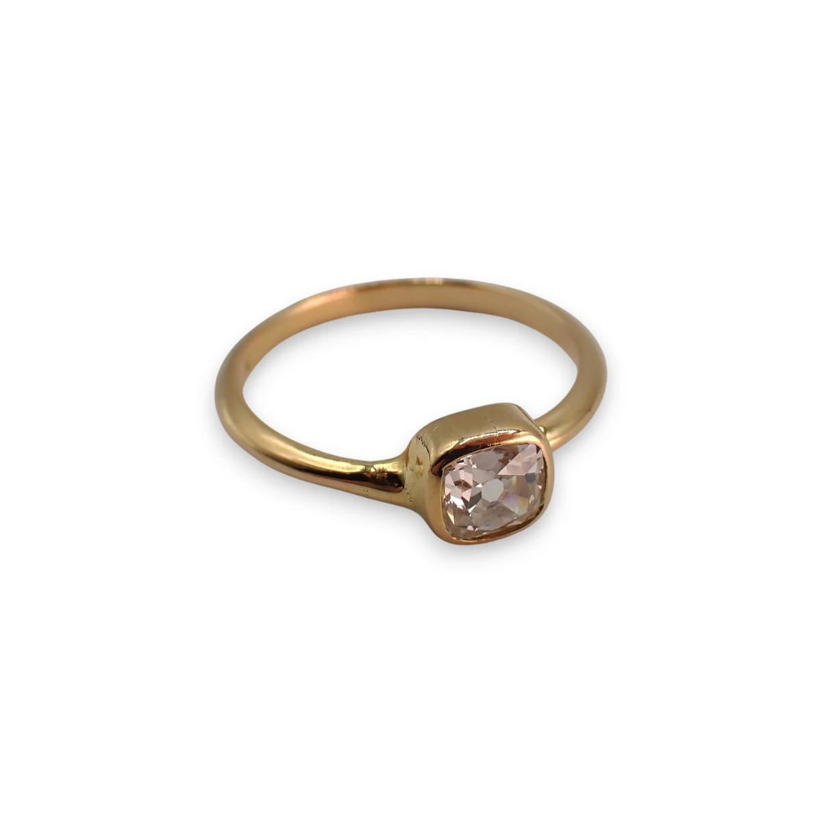 Anello solitario in oro giallo con diamante taglio antico a cuscino di ct 0,65 circa