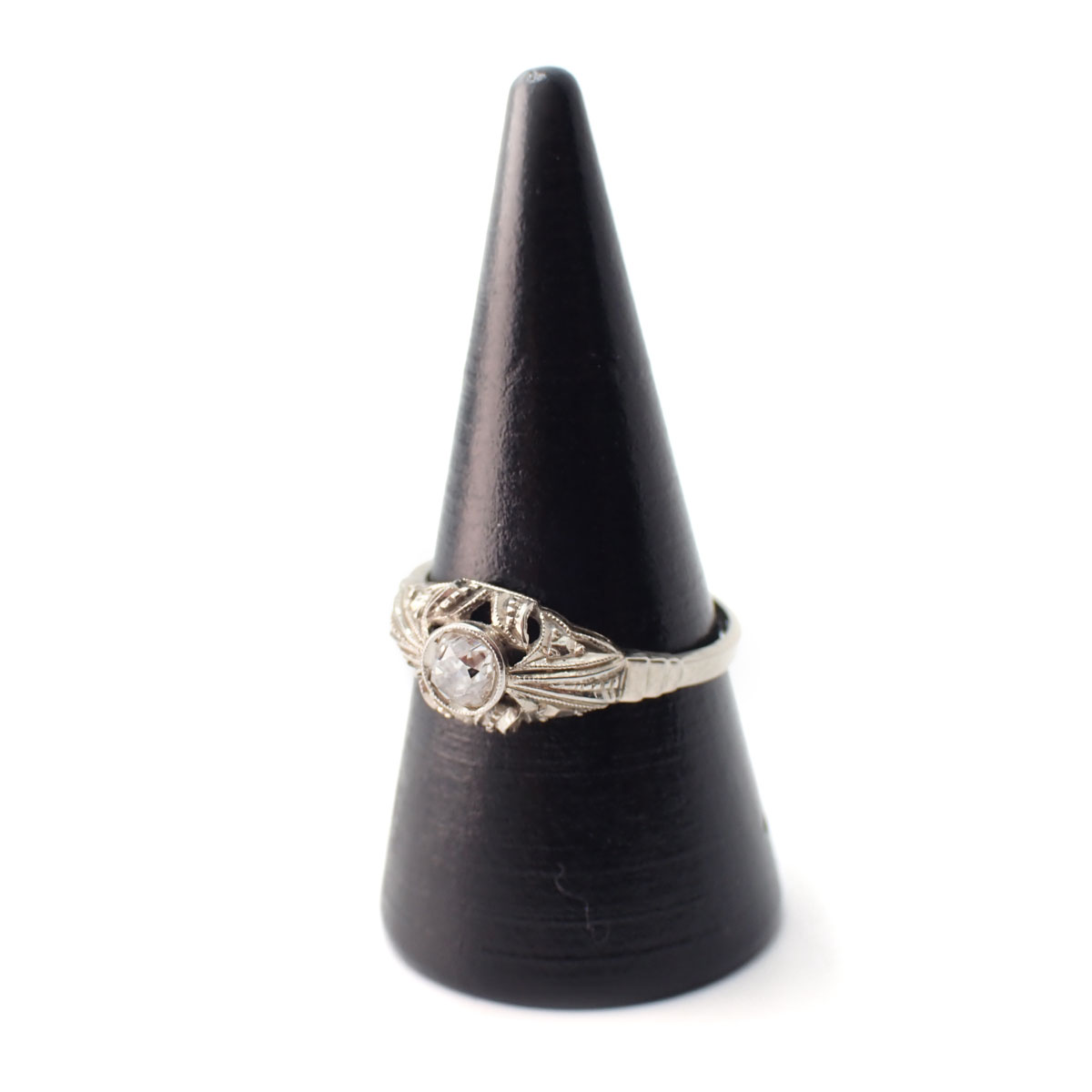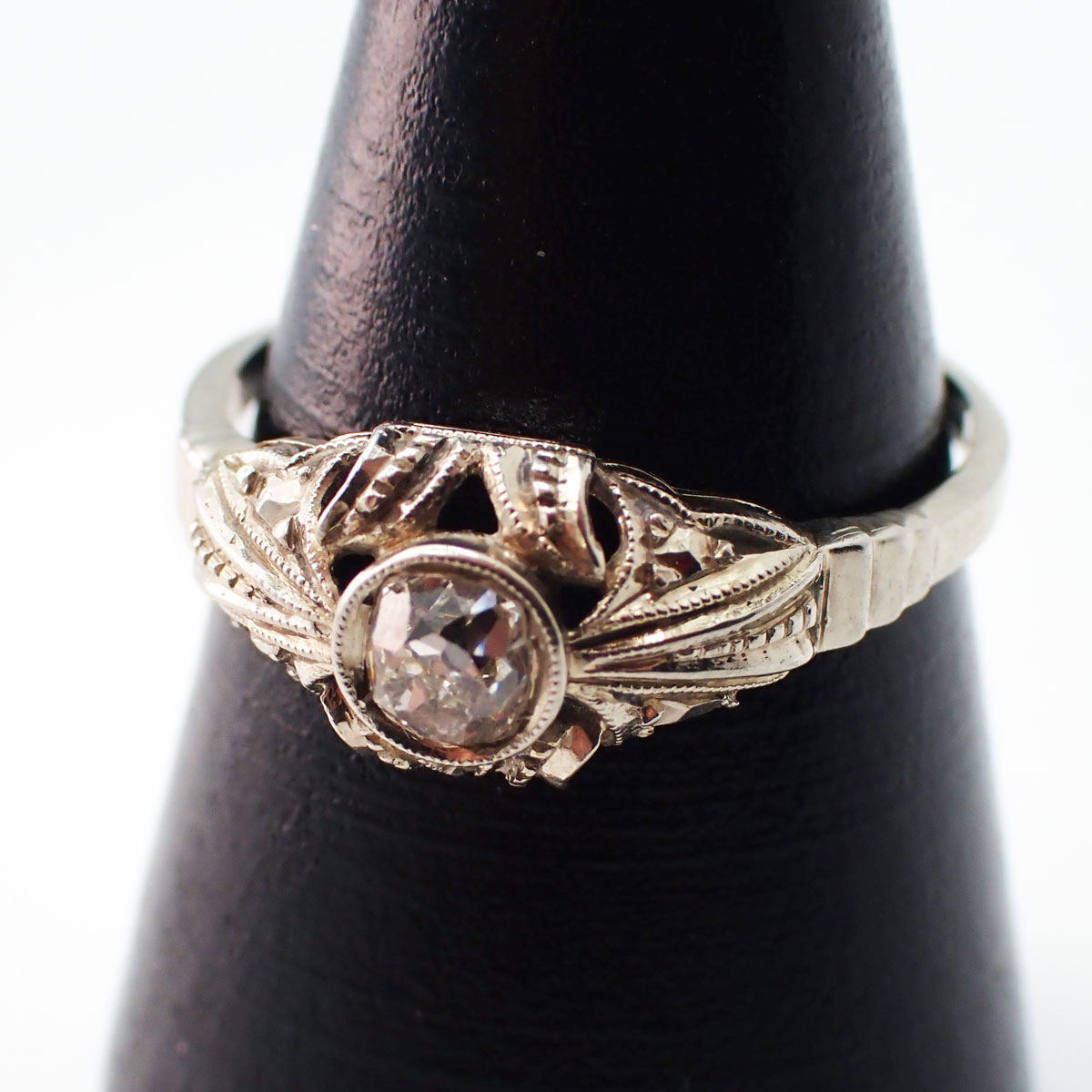 Anello solitario in oro bianco 750 con diamante taglio antico di circa 0,35 ct .