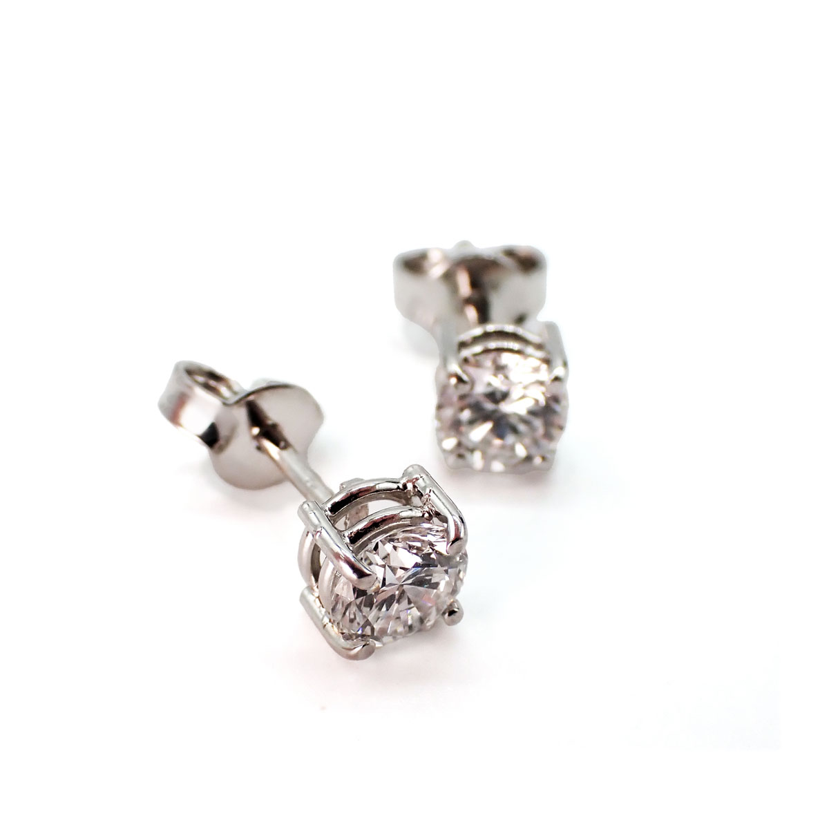 Orecchini punto luce in oro bianco 750 con diamanti rotondi taglio a brillante con un peso complessivo di 1,10 ct