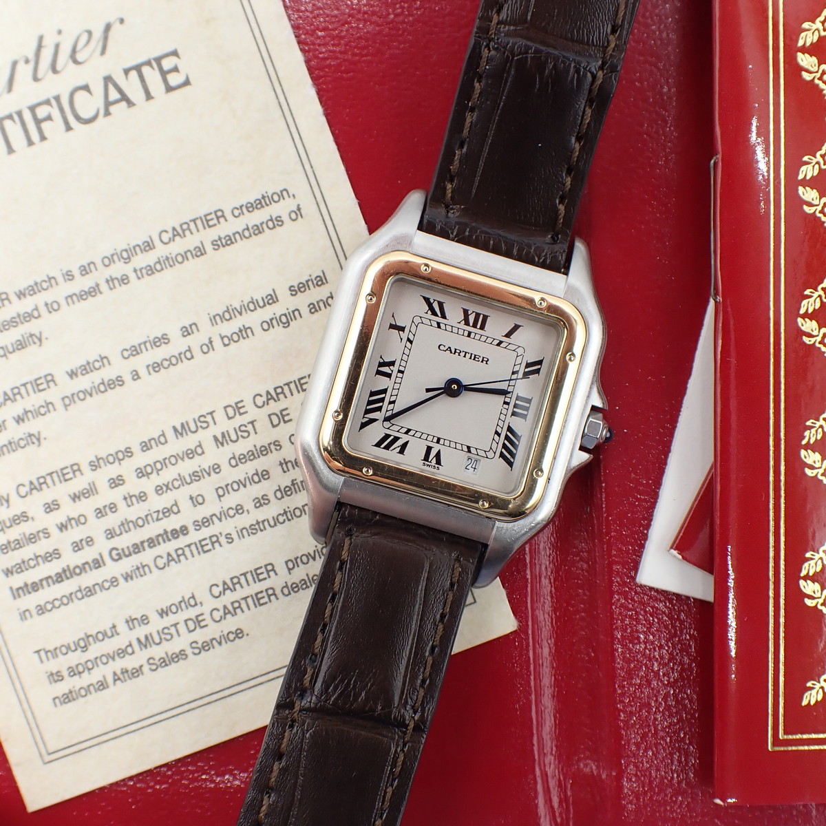 Orologio Cartier Panthere cassa in acciaio e oro giallo REF.1100, cinturino in pelle con deplyante in acciaio, movimento al quarzo con garanzia originale