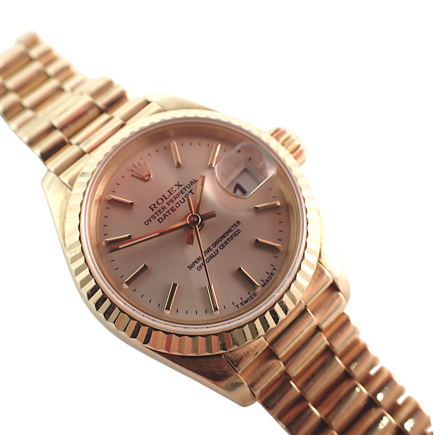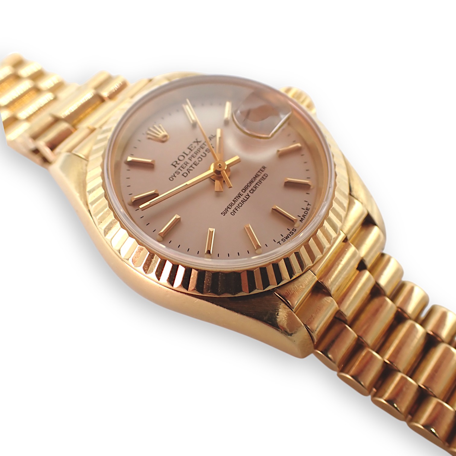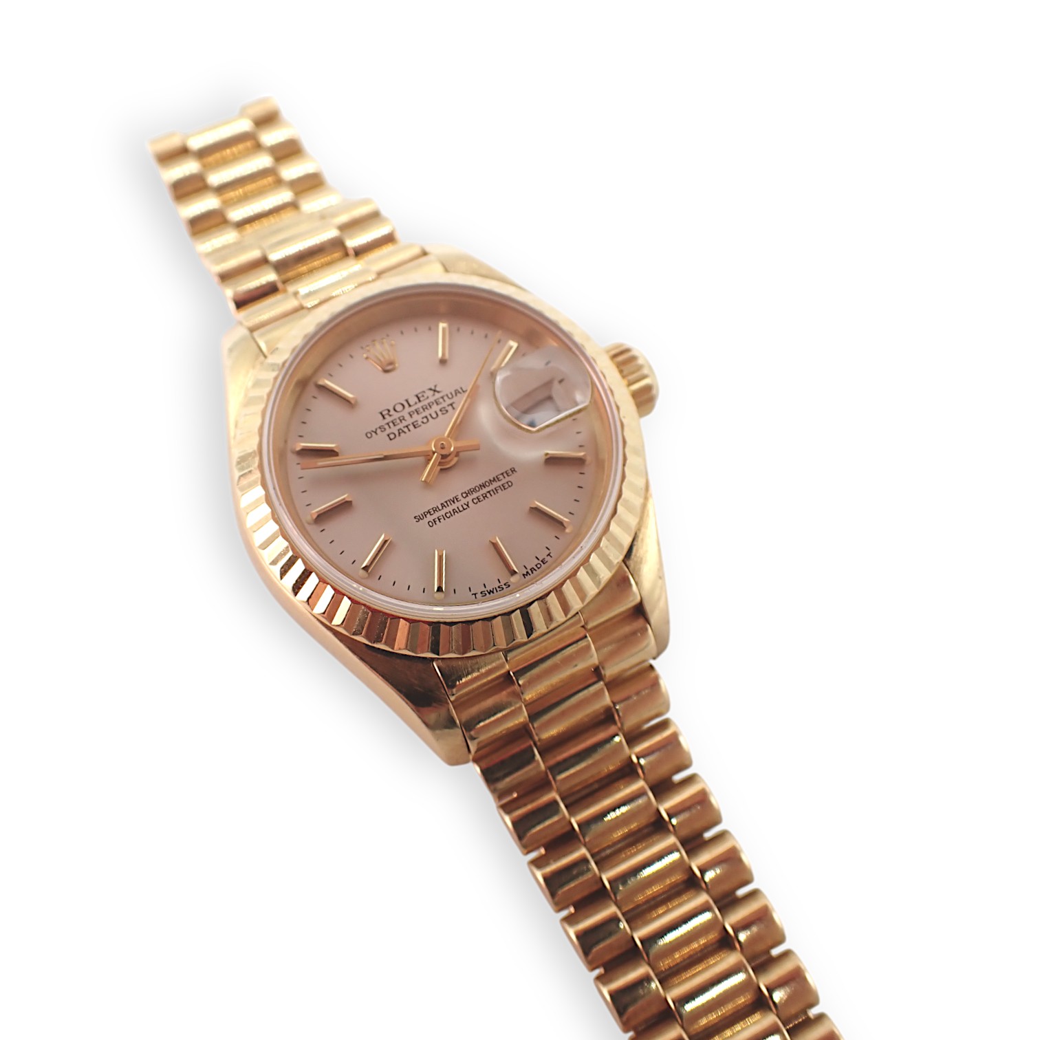 Orologio Rolex Datejust Lady in oro giallo, ref 69178. Movimento meccanico automatico, vetro zaffiro e bracciale president. Corredato di Garanzia originale