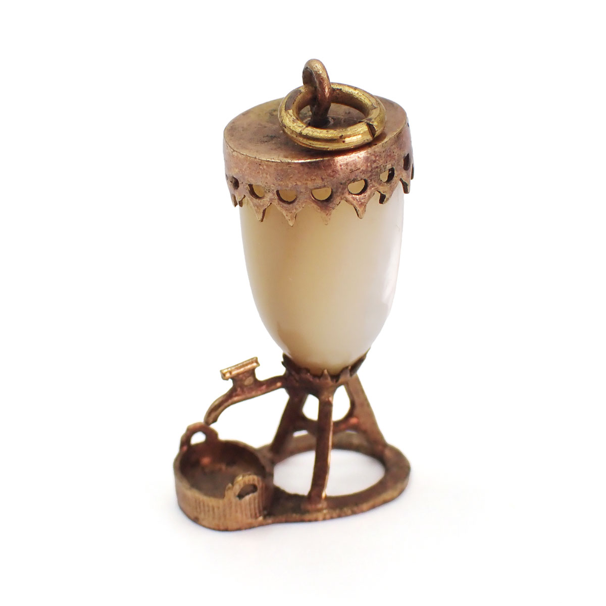 Pendente charm rappresentante una fontana in oro a basso titolo e madreperla