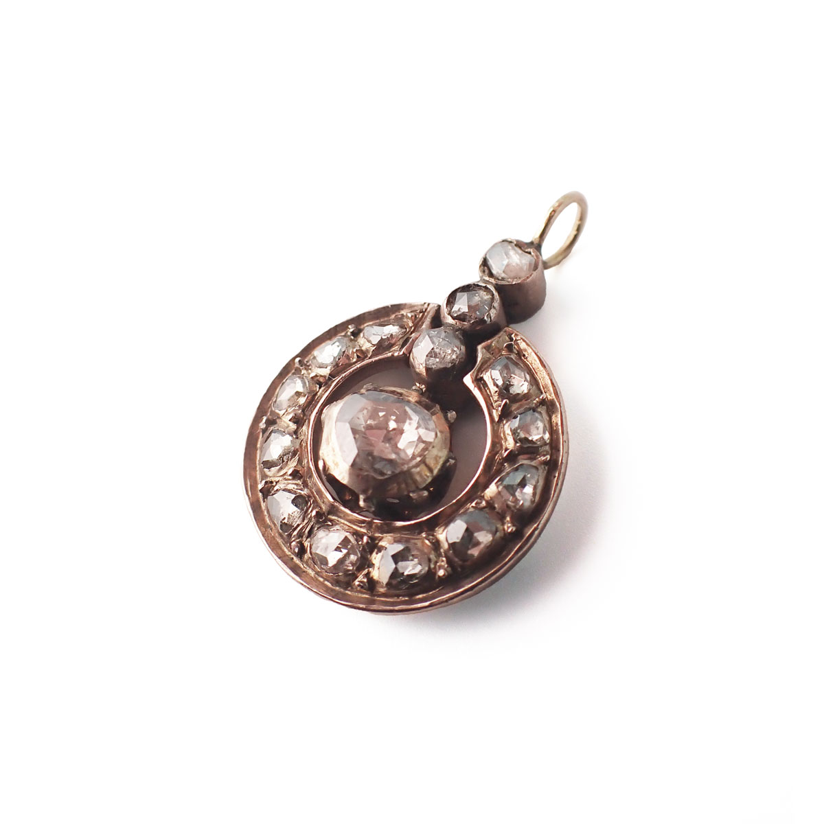 Pendente in oro rosso a basso titolo con diamanti taglio rosetta