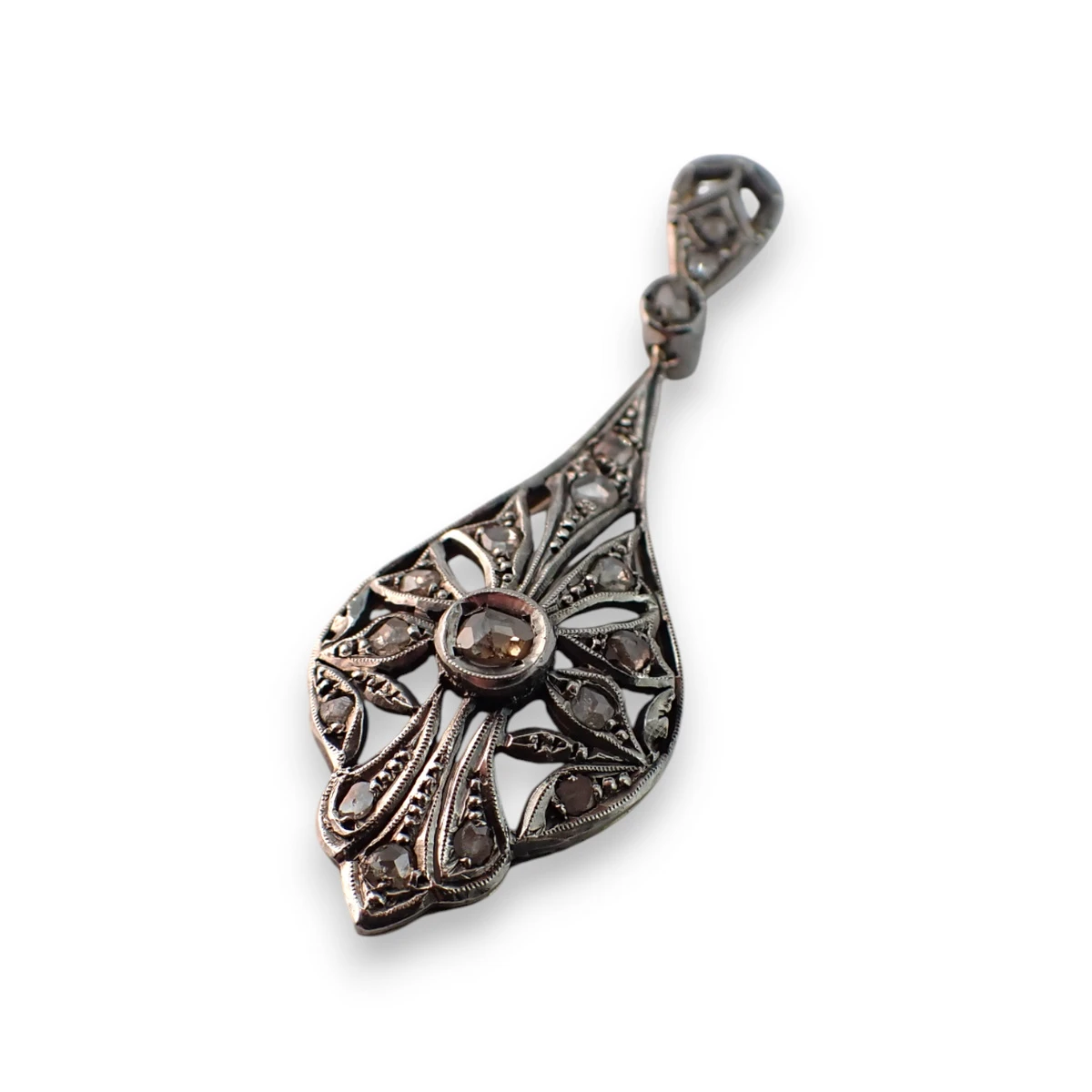 pendente goccia in oro a basso titolo ed argento con diamanti taglio rosetta