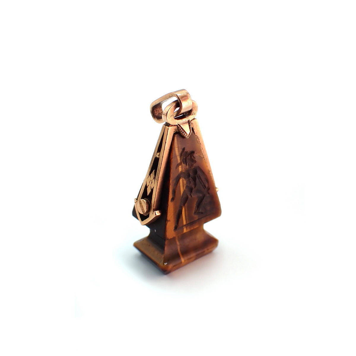 Pendente sigillo francese dell’ottocento in oro rosso con occhio di tigre incisa